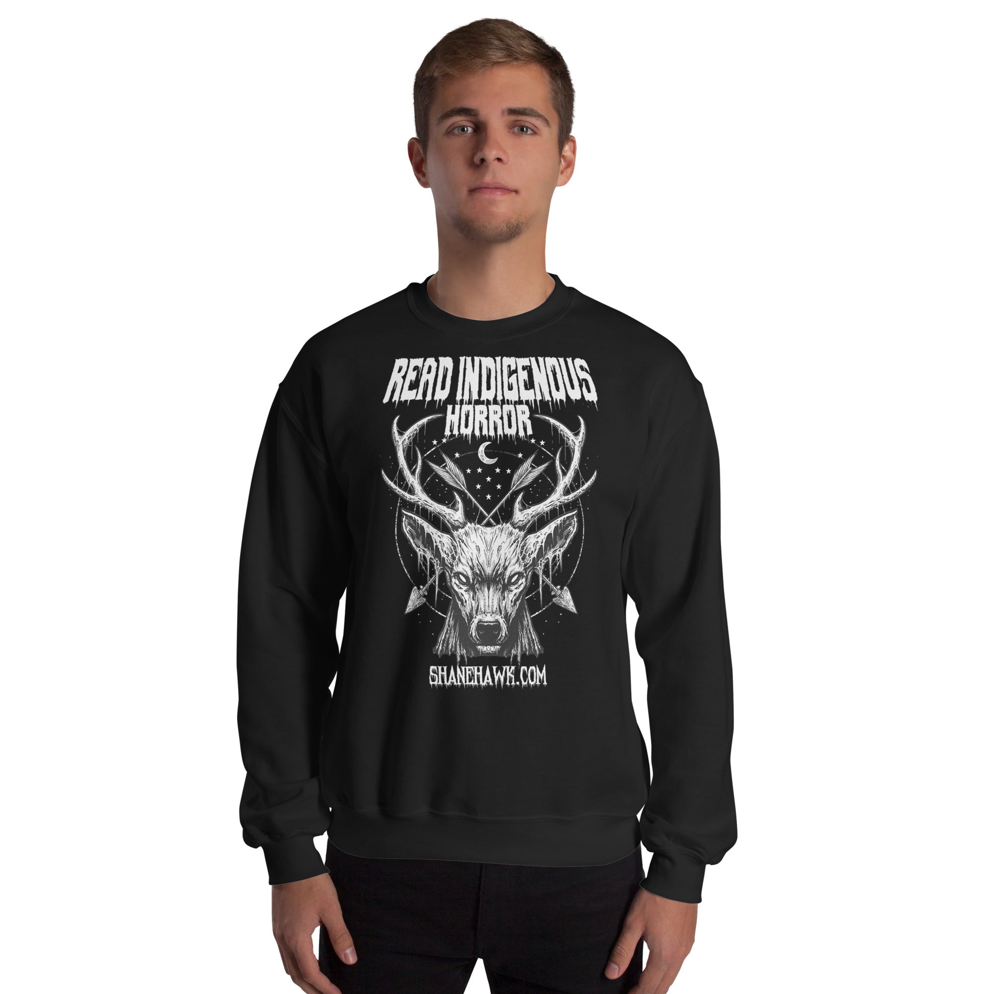 Don't love hoodies? Stay warm and support Indigenous Horror with this dope crewneck.
